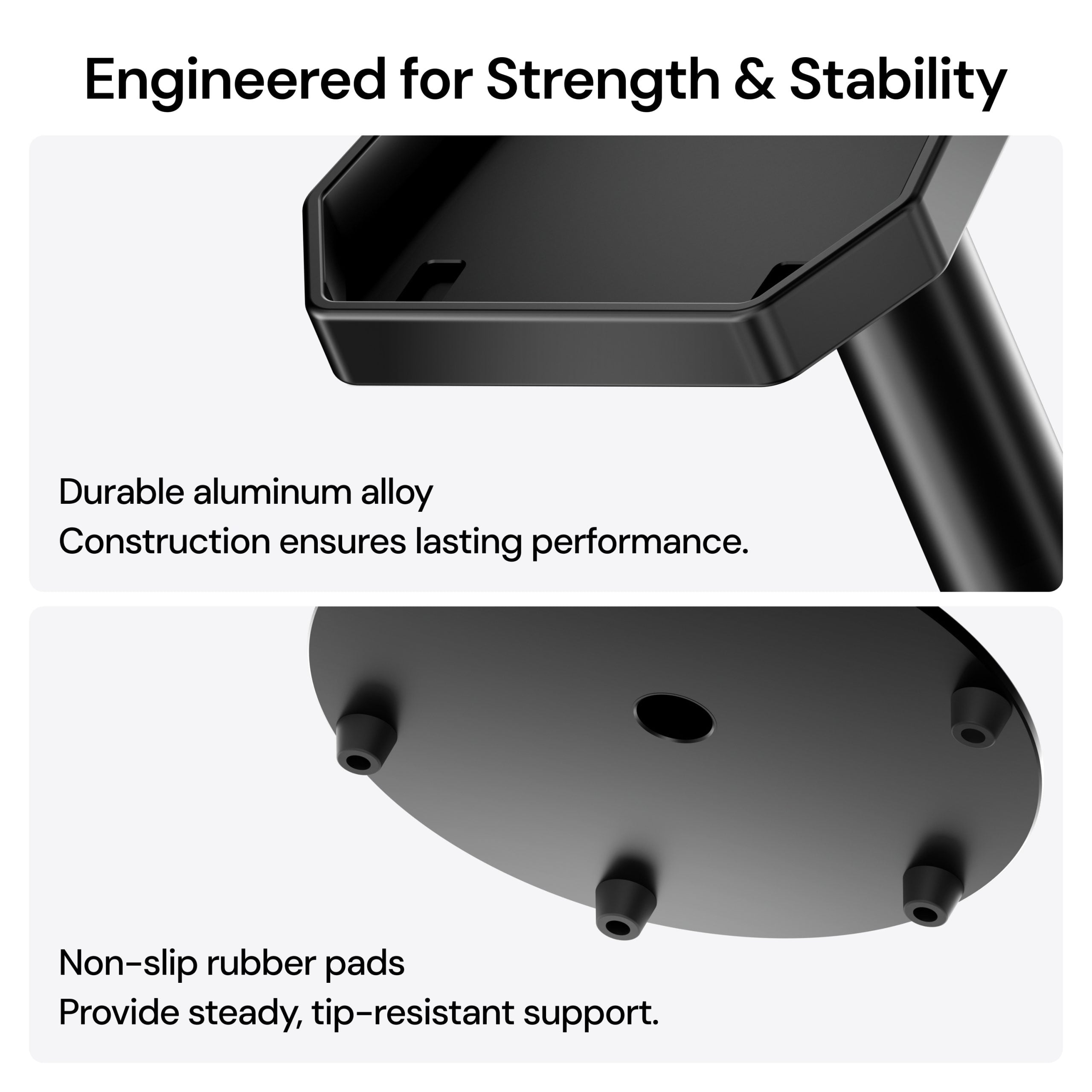 • Widened base enhances stability, while rubber pads minimize vibrations for optimal sound performance.